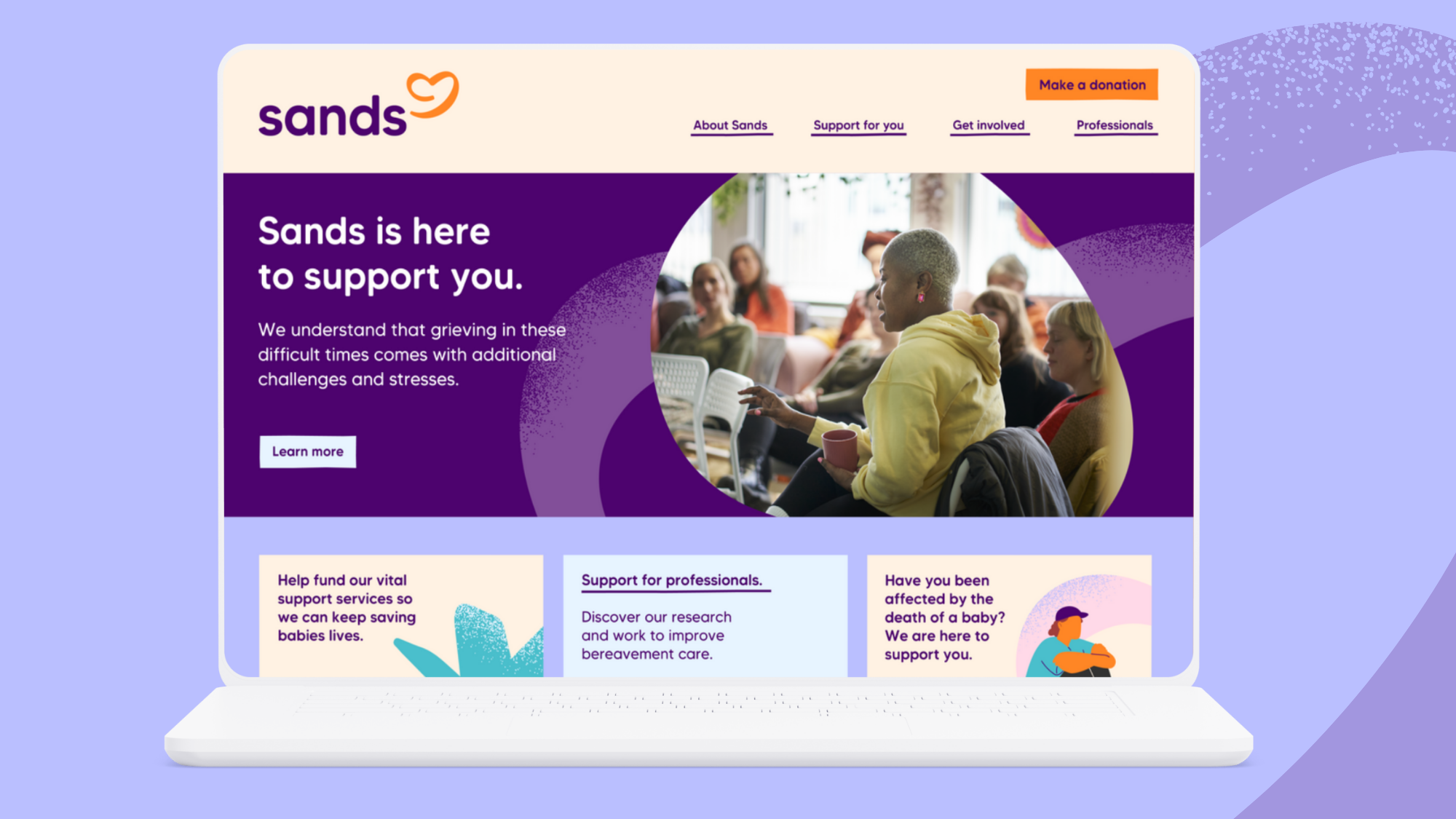 We heard where we needed to make some bigger changes, and what was working well. That’s why you will notice some things look quite different, whilst others have stayed the same. Like our strapline, Saving Babies’ Lives. Supporting Bereaved Families. Because all the research and feedback showed us that this remains the best way to quickly explain Sands.